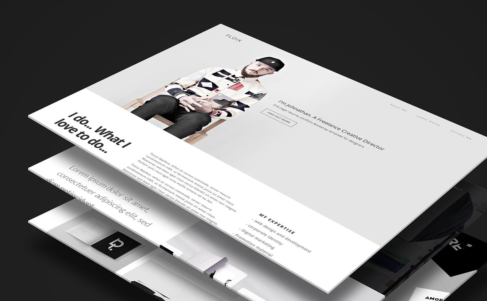 Все вместе образует красивый, динамичный и актуальный в 2020 году темплейт для портфолио.