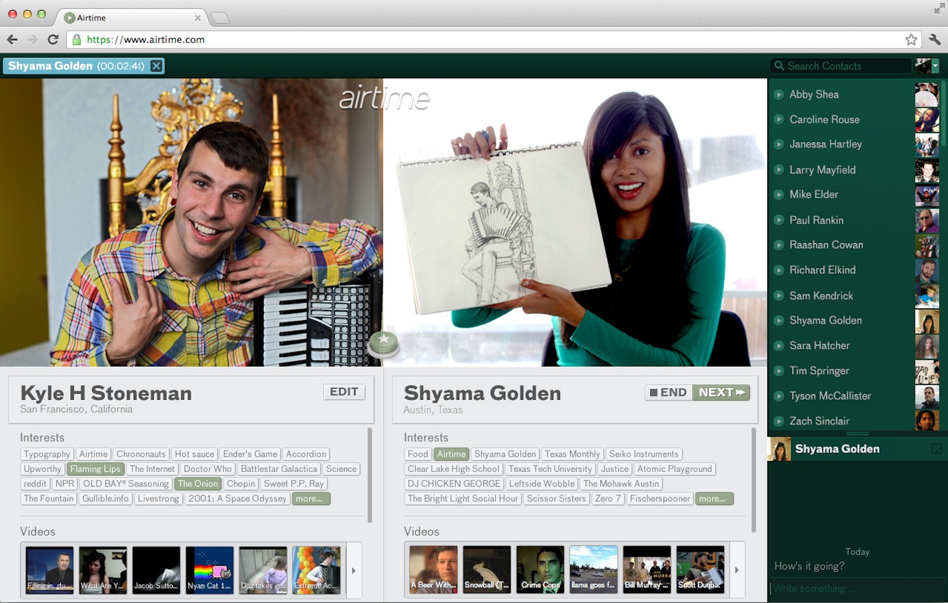 Сайт, построенный по принципу «chat roulette» — эстафеты по 7 минут общения с каждым участником группового чата. Пользоваться можно как на компьютере после регистрации через Facebook, так и скачав приложение на телефон.